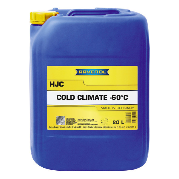 RAVENOL HJC COLD CLIMATE -60°C - расхладна течност спремна за употребу, претходно помешана са водом, ван сезоне, развијена на бази моноетилен гликола за системе хлађења мотора, гарантујући заштиту од корозије и смрзавања када се примењује у климатским зонама са смањеним температурама, без садржаја амина и фосфата.